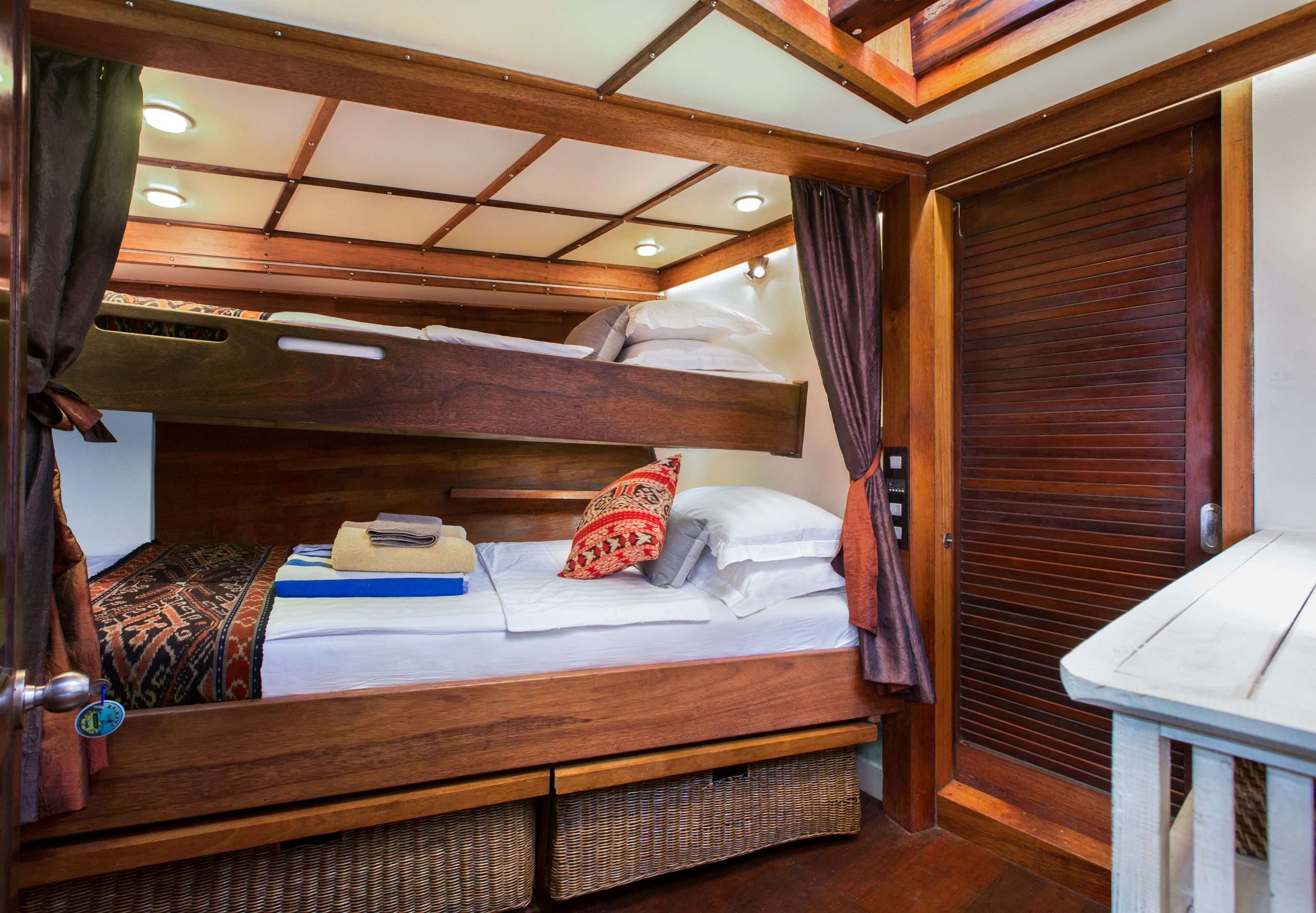 There are even hints of animistic religions from Sulawesi throughout the ship. When you’re on board, look closely at the prow to find a pair of dried goat feet, a custom long believed to bring good luck to sailors.