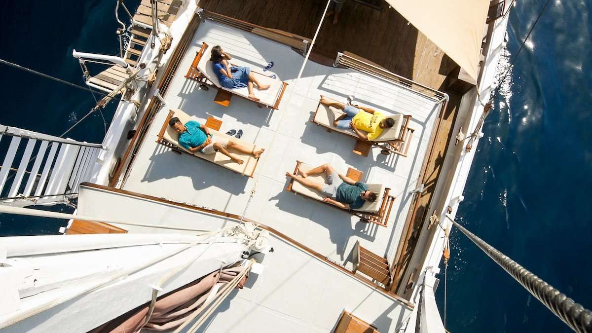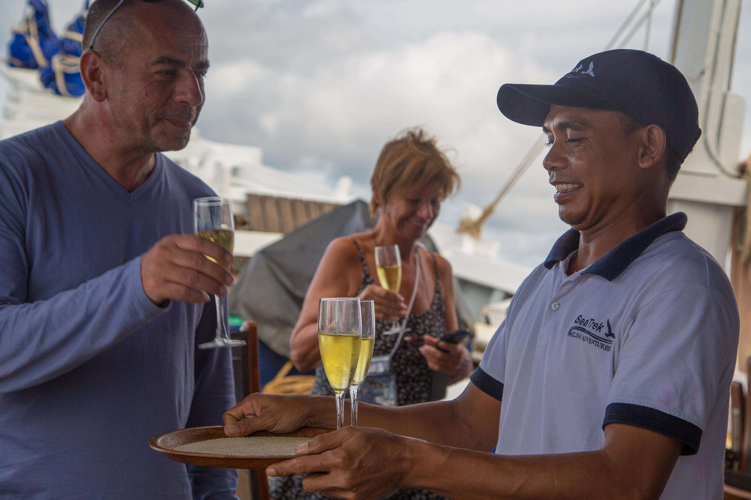 The SeaTrek team emails a packing list to guests in the weeks before departure, but make sure to pack reef-safe sunscreen, polarized sunglasses, several bathing suits, and attire suitable for the tropical heat. That may include long-sleeved shirts or hoodies to protect your skin from the sun. A rash guard or water shirt may be good so your back doesn’t get sunburned while snorkeling. Bring plenty of books, as nothing is more glorious than a good read paired with a lazy tropical breeze. Be sure to download books in advance since you’ll be without Wi-Fi. That said, while most people use the trip as a digital detox, 4G service is intermittently available on some cruise routes.