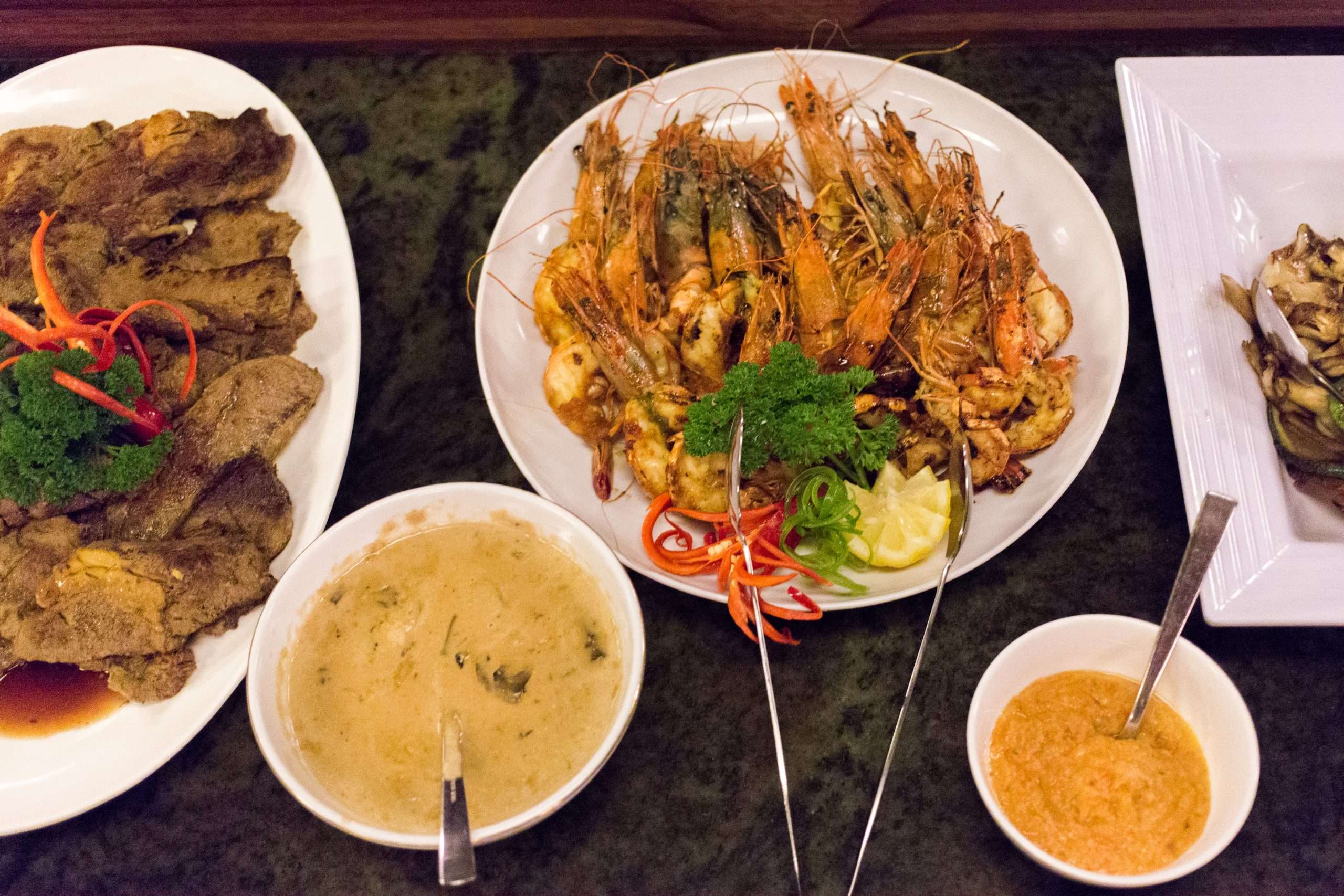 The fare was a mix of Indonesian staples like nasi goreng and other spicy stews paired with Western comfort chow like fried chicken, steak, and grilled fish. The morning buffet included fried eggs, sausages, porridge, assorted jams for toast and bagels, and Southeast Asian delicacies like dragon fruit and lychee. Guests can also request a traditional Indonesian breakfast like bubur ayam, or rice porridge with chicken.