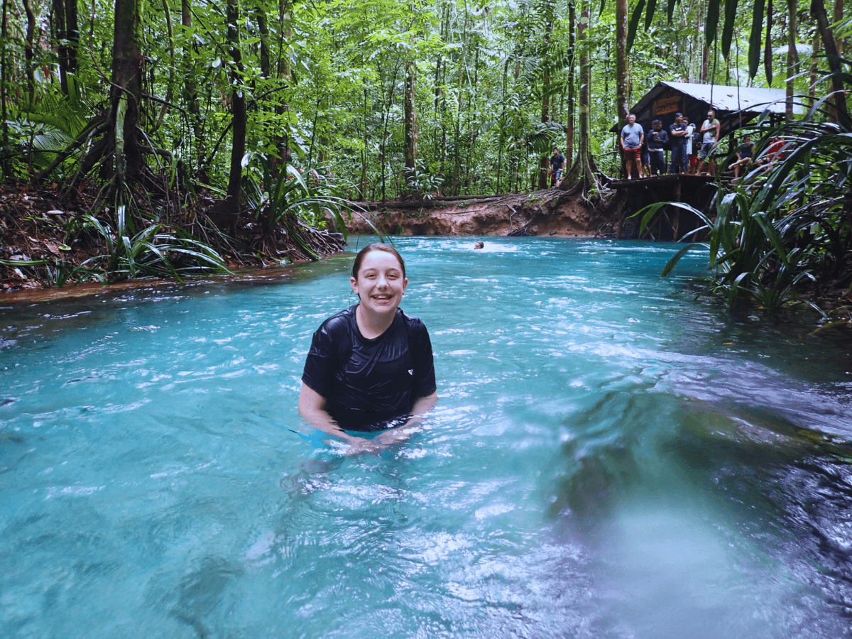 To get to Kali Biru, you have to rent a local boat along the river for around 15 minutes from the village. Once you reach the land, you still must walk along a path through the forest for around 30 minutes. Even though it sounds challenging, it’s a worthwhile adventure because, along the way, you will see the forest’s beauty before reaching the Kali Biru spot.