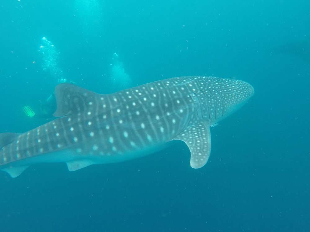 I slid gently into the water, and immediately came face to face with a whale shark, we made eye contact. “Even if they all swim away from us now”, I thought, “I’ve still done it, I’ve had a whale shark encounter”. They are the biggest fish in the ocean yet they’re not aggressive and they were not afraid of us either, but we’d been told to resist the urge to touch them and to anticipate the movement of their tails. Even though they move smoothly, getting struck by a tail would feel like being slapped by a giant hand.