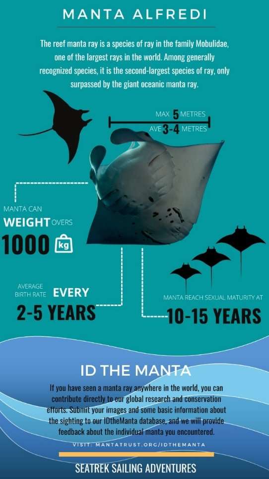 Just in case you thought there was not much more to know about mantas, how about this: They can dive to 1,000m (+3,200’ or 2/3 of a mile) deep! So don’t worry about spoiling their privacy while snorkeling!