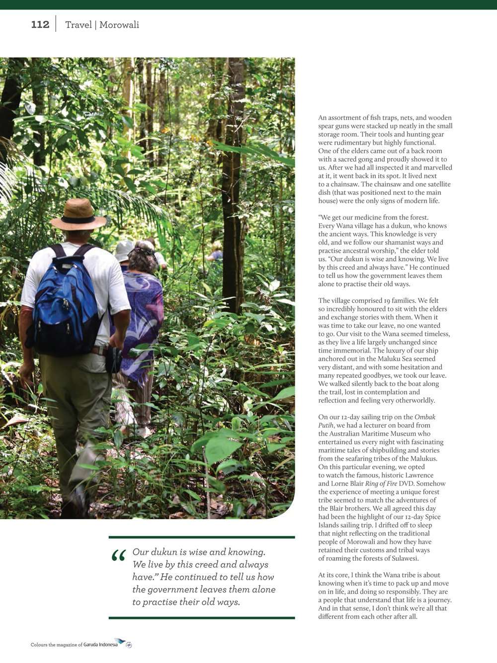 On our 12-day sailing trip on the Ombak Putih, we had a lecturer on board from the Australian Maritime Museum who entertained us every night with fascinating maritime tales of shipbuilding and stories from the seafaring tribes of the Malukus. On this particular evening, we opted to watch the famous, historic Lawrence and Lorne Blair Ring of Fire DVD. Somehow the experience of meeting a unique forest tribe seemed to match the adventures of the Blair brothers. We all agreed this day had been the highlight of our 12-day Spice Islands sailing trip. I drifted off to sleep that night reflecting on the traditional people of Morowali and how they have retained their customs and tribal ways of roaming the forests of Sulawesi.