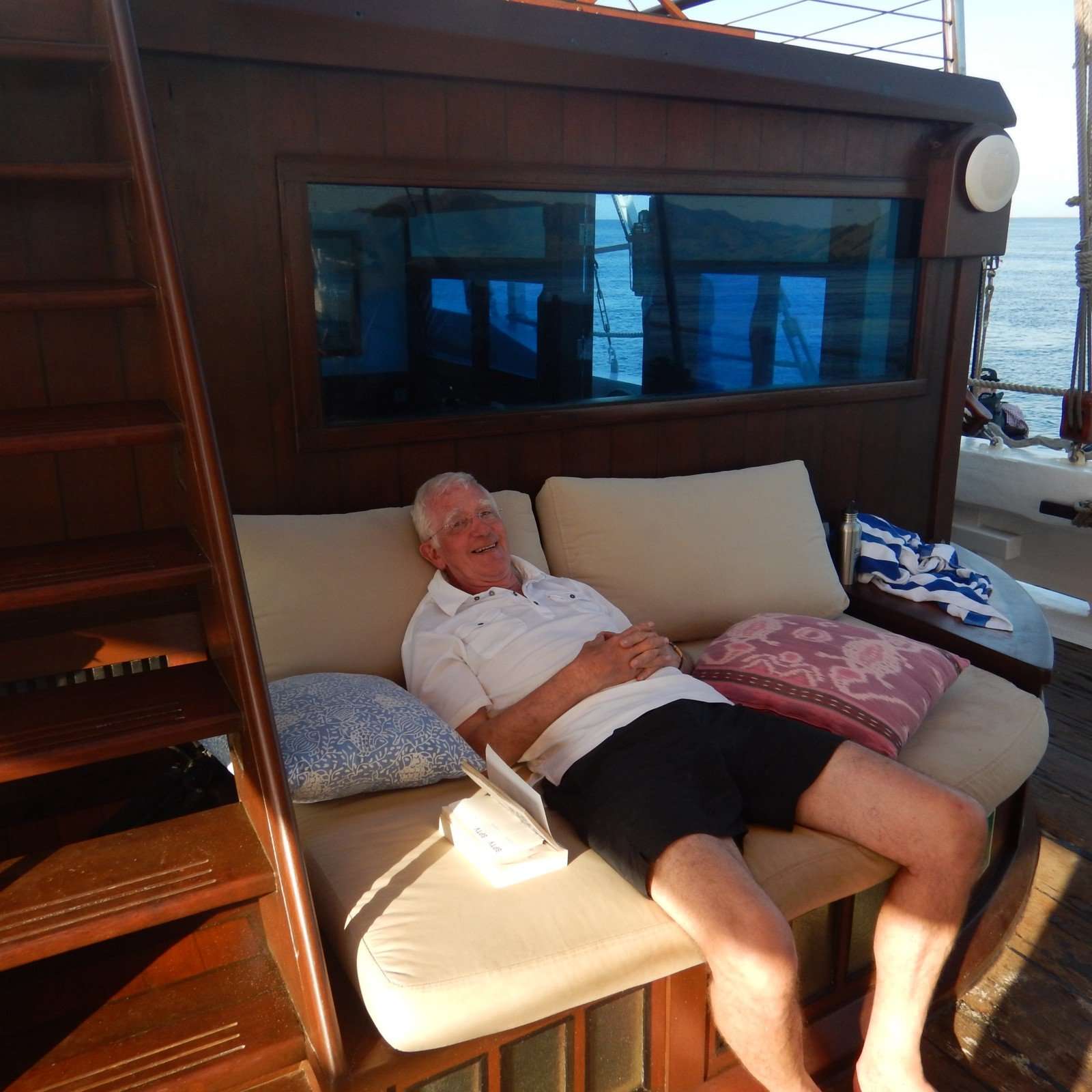 As you take real time to relax, you also relearn the exquisite skill of genteel conversation. Those who have joined you on this cruise are from…well, everywhere. England. Australia. America. And of course, the Balinese crew who tend to your every need, whether it’s a midday gin and tonic (WHAT? on a TUESDAY? Damned right.) or help with laundry.