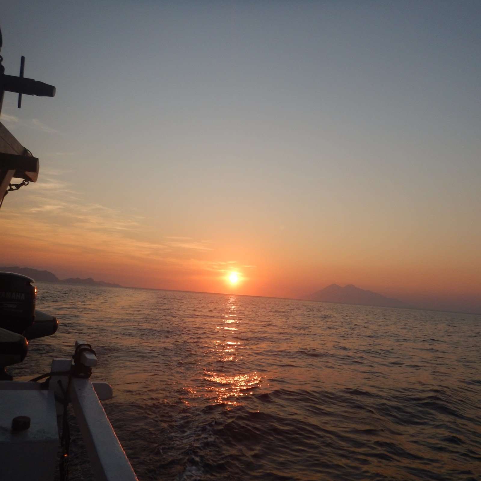 Bathwater warm, punctuated by leaping porpoises, the occasional hump of an island in the distance. Royal blue, turquoise, full of life.