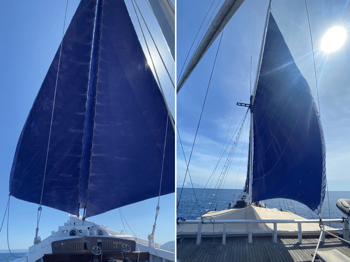 We’d sailed quite a bit on this trip as we had Gavin, one of the owners of SeaTrek and his family onboard. Gavin is a sailor and loves nothing better than hoisting the sails, which is all done by hand with no winches or pulleys! Quite a feat with the weight of the canvas sails. Lots of men helped to adjust the sails as needed. It was a gorgeous way to while away the time gazing at their calming magnificence.