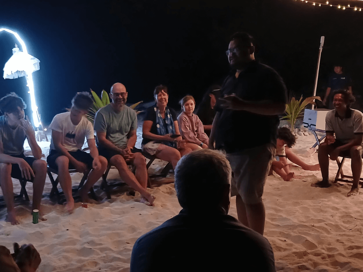In the afternoon after another snorkel in a different location we had cocktails on the beach and a bit of music provided by the multi-talented crew. Every one of them can sing like angels.