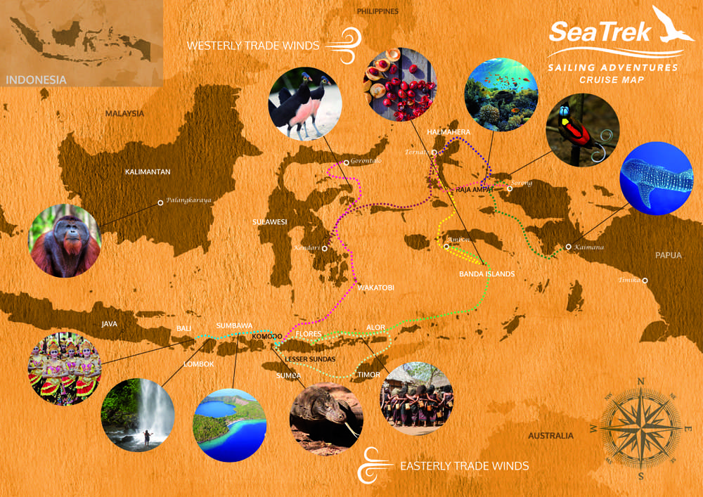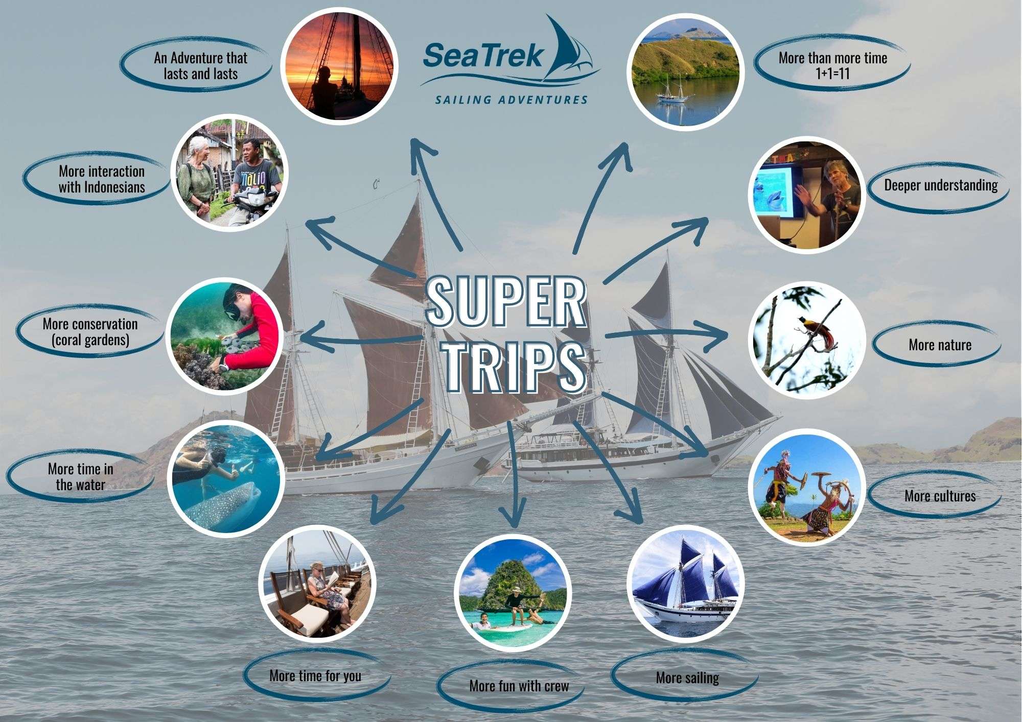 A SeaTrek Super Trip is an extraordinary adventure where you can choose two cruises back-to-back, opening up a whole host of options to enhance your Indonesian experience. When in port between trips, your accommodation is taken care of, and you will have a SeaTrek tour leader assigned to you with local guides on hand to show you all the local area has to offer. By doing two trips, we also offer you a 5% discount.