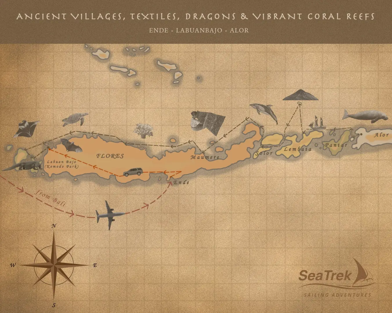- We will visit a local village and meet some of the locals and see how they live their lives, and around sunset we will weigh anchor and head east in the direction of Maumere.