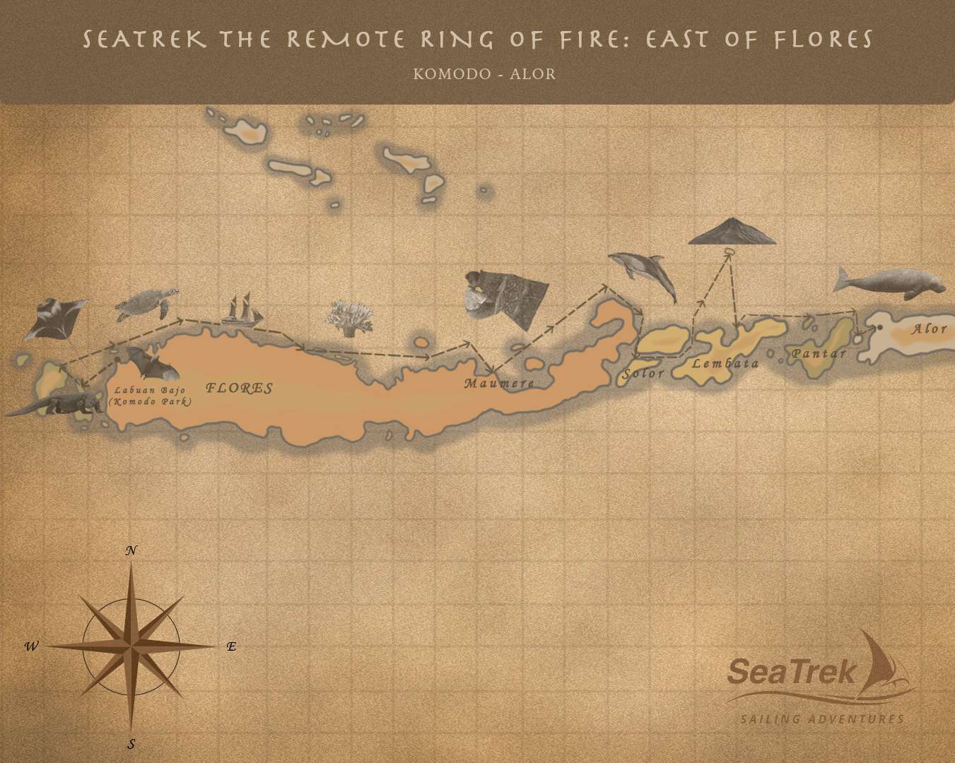 - We will then raise anchor and head north in the direction of the uninhabited, active volcanic island of Komba.