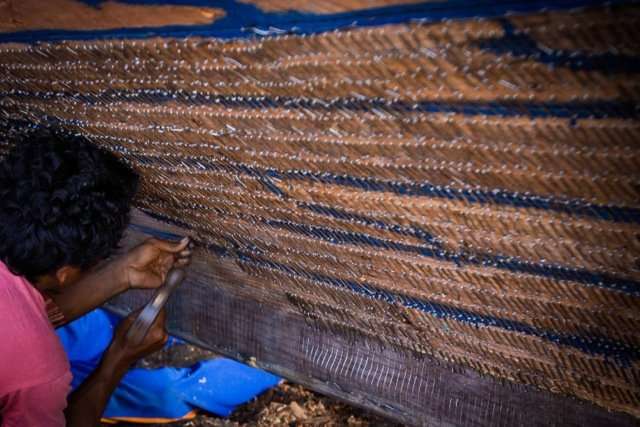 Made of Kayu Ulin or Ironwood (Eusideroxylon zwageri), pinisi are known for being strong, but it pays to be cautious when navigating Indonesia’s notoriously tricky reefs. Up to this point, these boats have been constructed with little metal except for some iron bolts here and there, but on the boat shown here the builders are experimenting with a new technique. Hundreds of kilos of nails will be pounded into the hull to hold a layer of cement to the belly of the boat to protect it from those pesky little scrapes with rocks and reef.